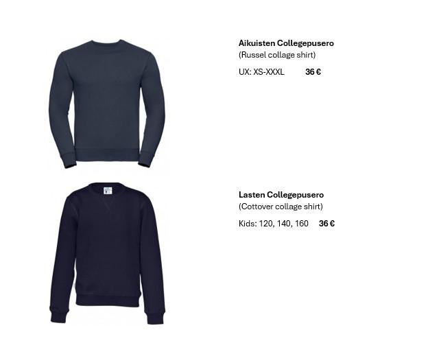 Lisäinfoa aikuisten collegepuserosta